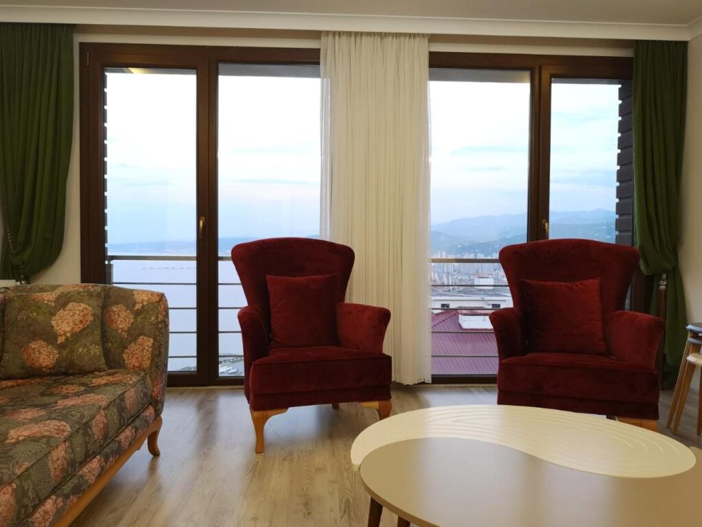 من البلكون الخاص، تتمتع بمشهد بانورامي يجمع زرقة البحر الأسود وخضرة جبال ألتن ديري.